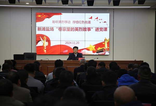 為進一步引導廣大黨員銘記歷史,致敬英雄,堅定理想信念,傳承紅色基因,近日,新灘鹽場以“黨員統(tǒng)一活動日”為契機,邀請濱??h人民法院和濱??h新四軍研究會走進新灘鹽場黨課課堂,開展“卷宗里的英烈故事”紅色文化宣講。2024-11-26 -