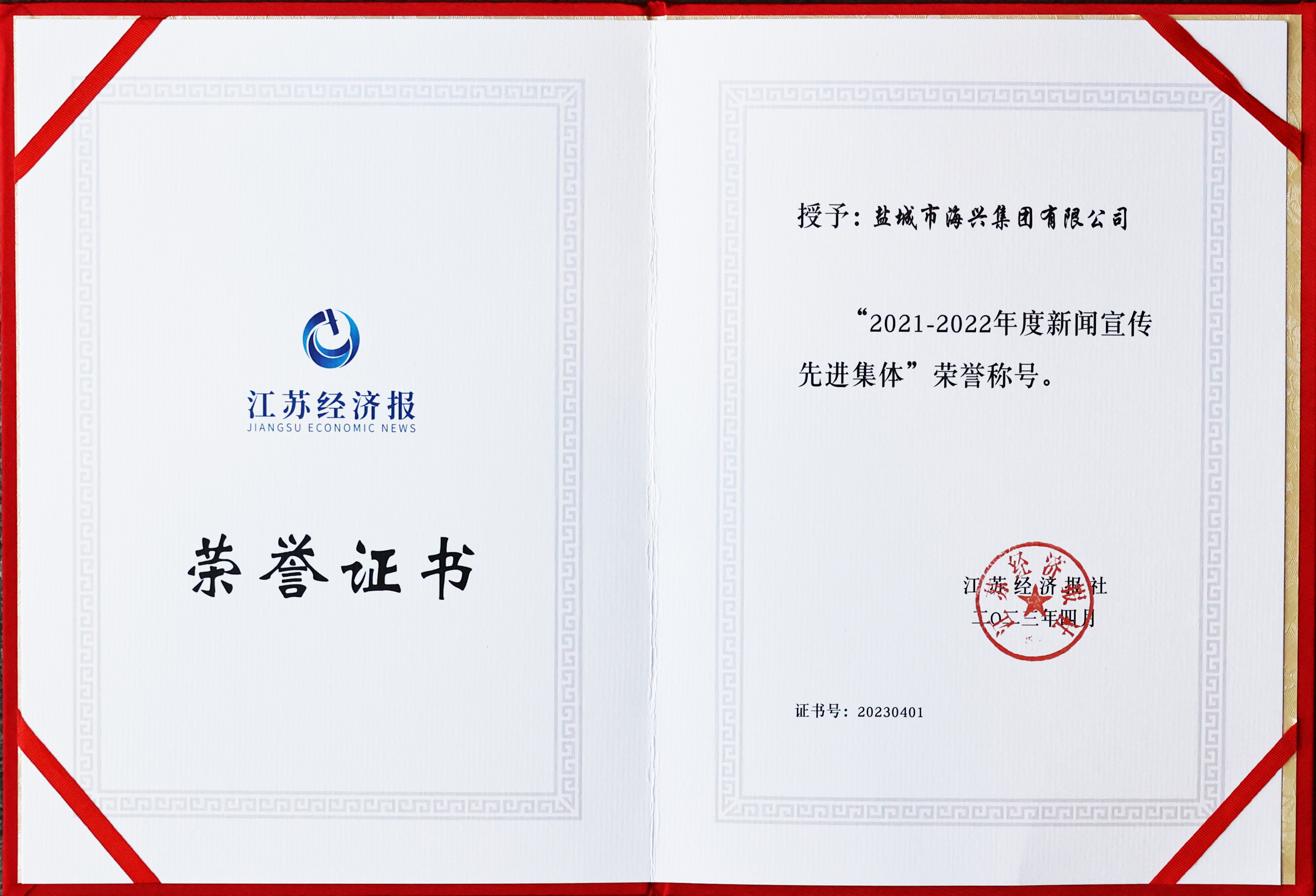 近年來,海興集團緊緊圍繞重點工作做好新聞宣傳,服務(wù)發(fā)展大局,傳遞海興聲音,弘揚實干精神,新聞的傳播力、影響力得到顯著提升,全力營造出干事創(chuàng)業(yè)的濃厚輿論氛圍。近日,集團被江蘇經(jīng)濟報授予“2021-2022年度新聞宣傳先進集體”榮譽稱號。2023-04-20
